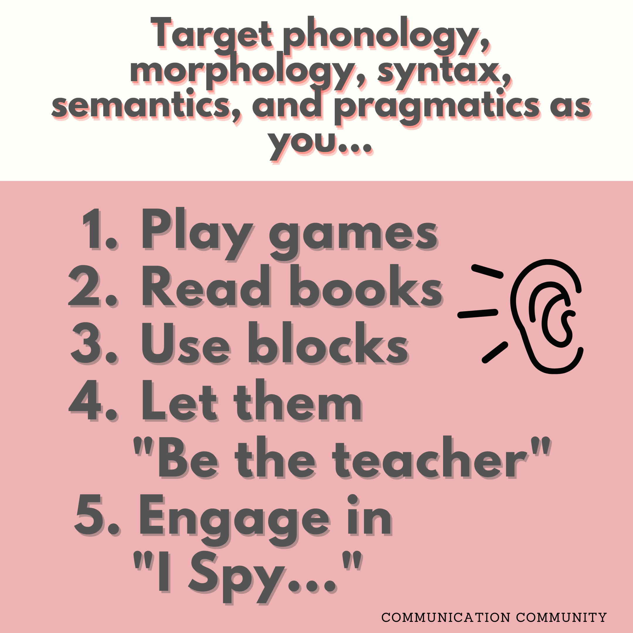 Once you’ve learned about receptive language, and know how to write goals, you are ready to target receptive language in therapy! …So we’ve come up with a list of our favorite ways to target receptive language skills. Many of these activities are great ideas for carryover too; caregivers can engage with individuals to help develop/increase these skills at home.