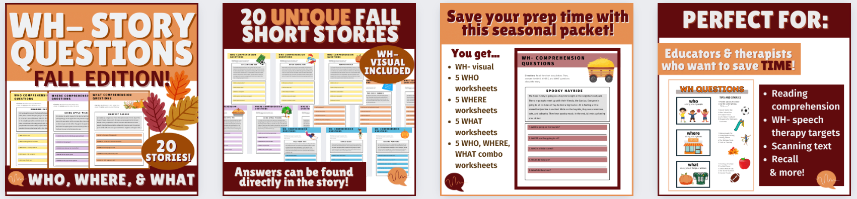 Check out our fall-themed WH- question stories - great for independent work or small group activities!