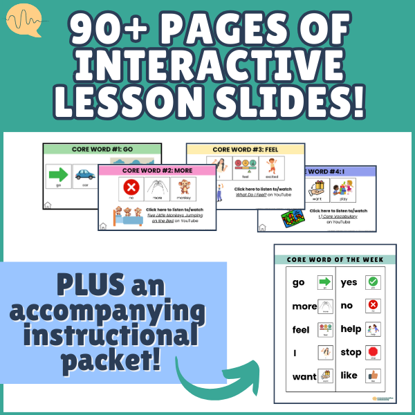 Get lesson slides & an accompanying packet for 10 CORE WORDS! Available on TPT and inside our Premium Community.