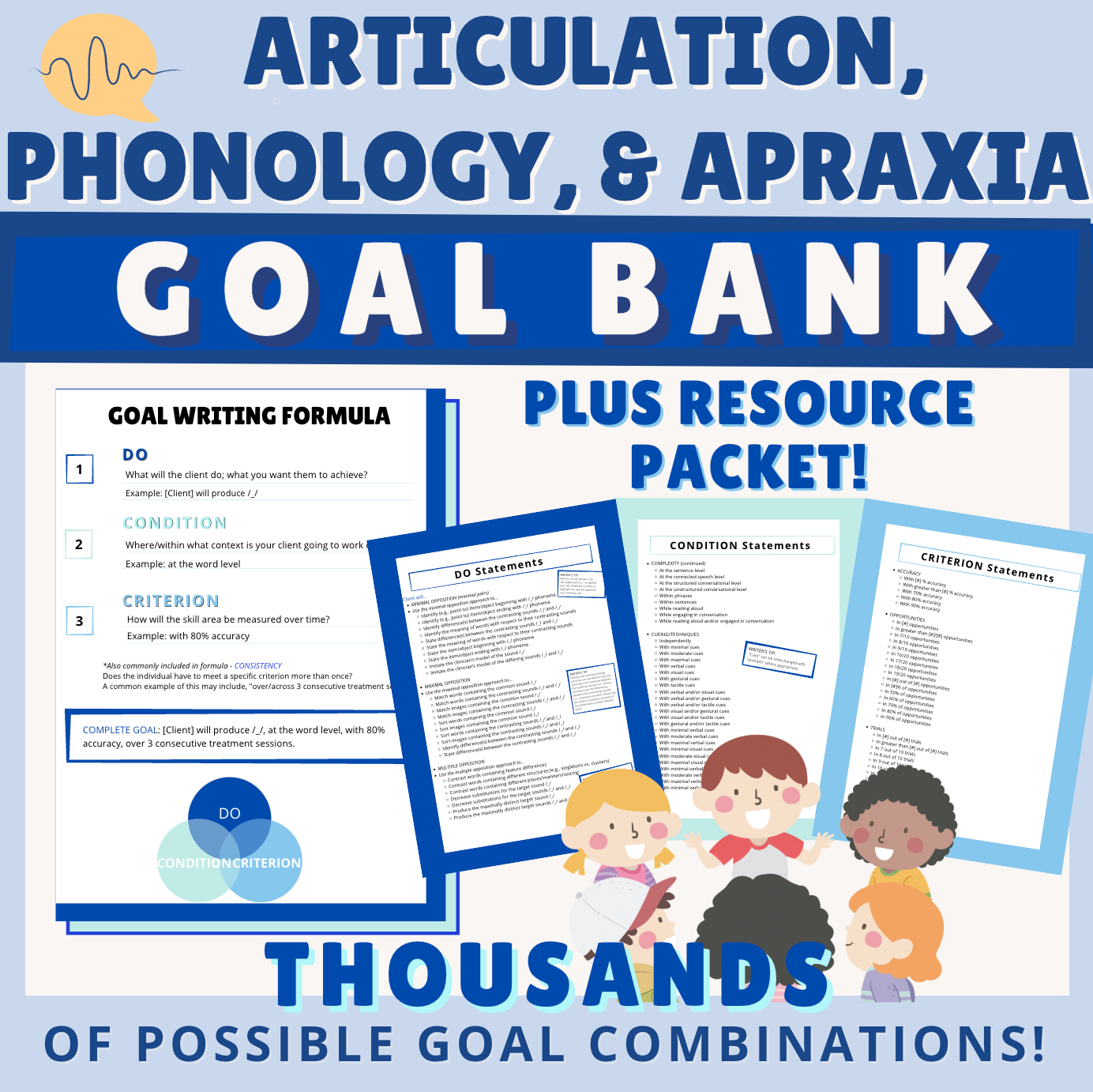 There you have it! An example using our Goal Writing Formula containing the DO + CONDITION + CRITERION (don’t forget to think about consistency!) for increasing phonological awareness skill areas.