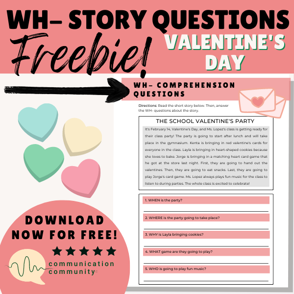 As SLPs, we target WH- questions A LOT. So if you are a therapist, teacher, or parent looking for a Valentine's Day-themed worksheet - enjoy this one on us!